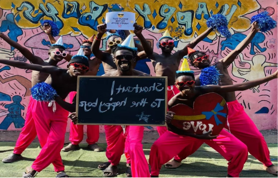 Pink happy boy